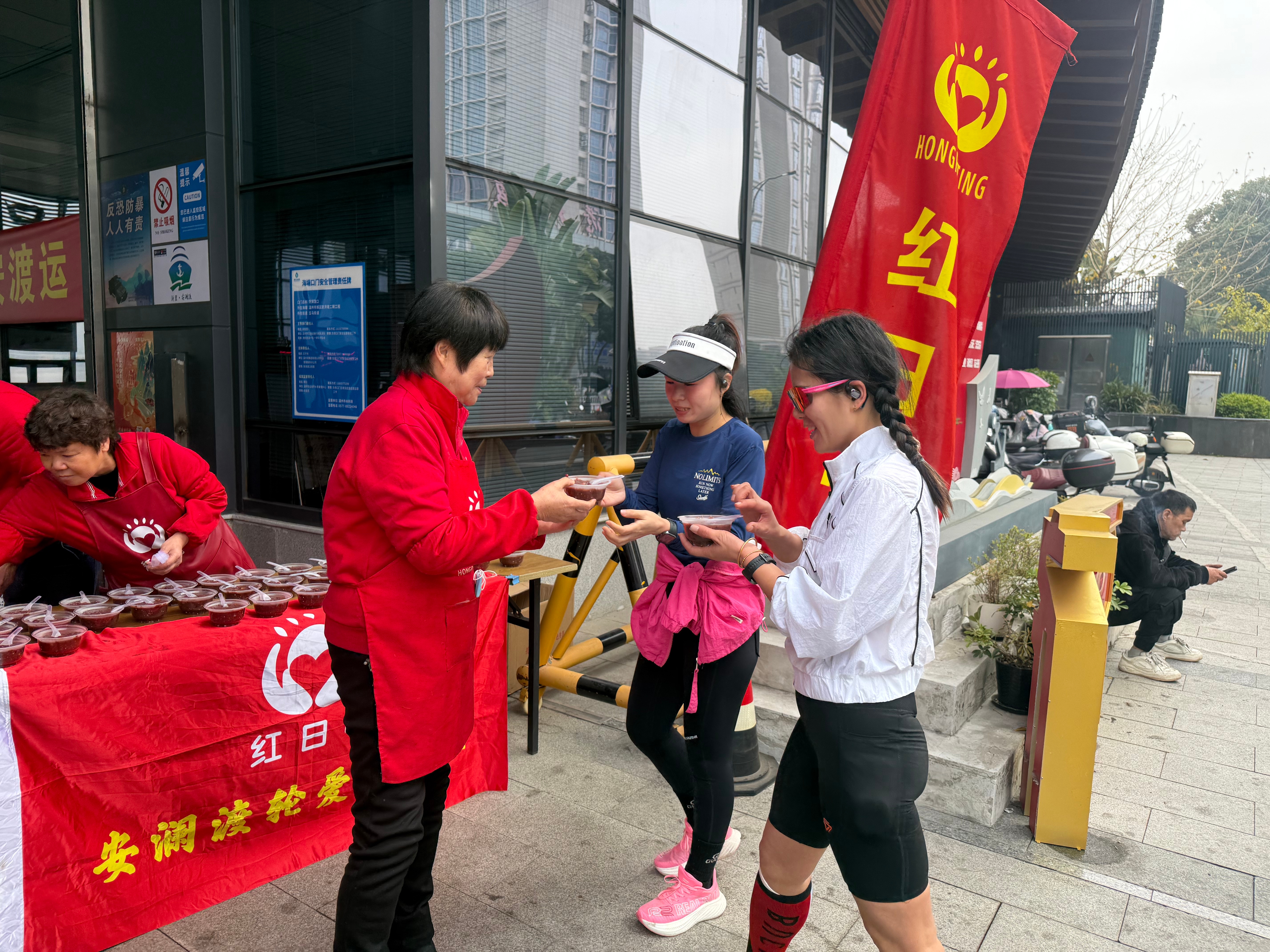 腊八暖冬行温情满渡口。安澜亭渡口内暖意融融。物管公司轮渡站联合温州市红日亭公益组织。共同开展"腊八...